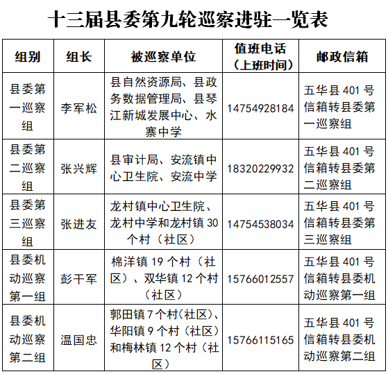 五华县开展第九轮巡察工作,各巡察组联系方式公布