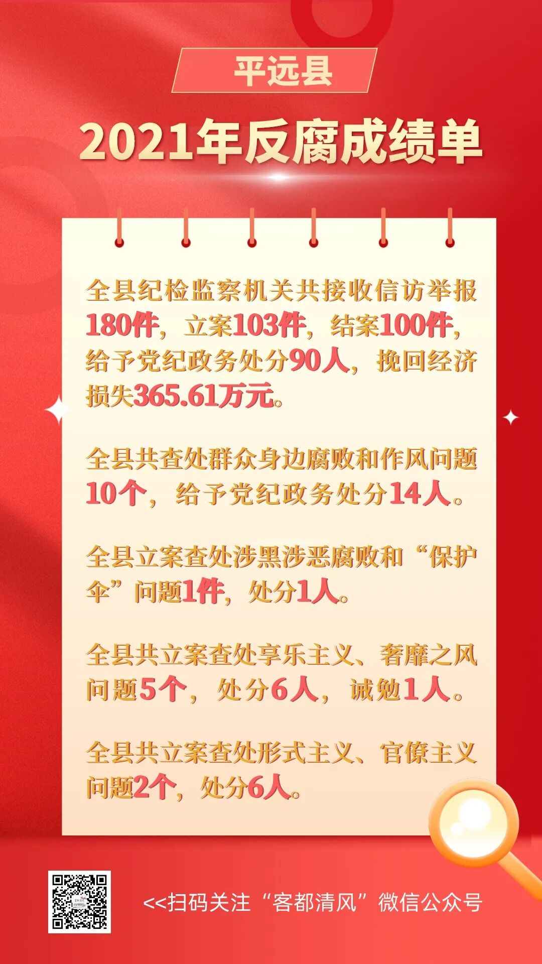 近期,各县(市、区)纪委全会陆续召开,过去一年正风反腐取得了哪些成效?接下来的重点工作是什么?“客都清风”微信公众号将推出系列报道,敬请垂注。