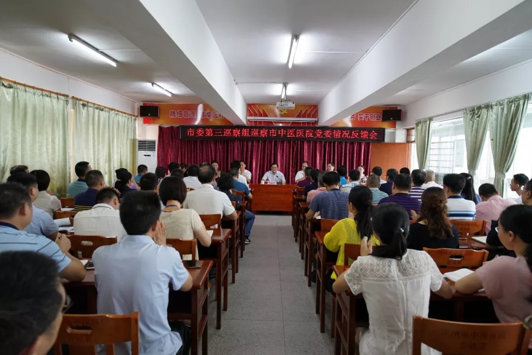 会上,市委第三巡察组反馈了巡察市中医医院党委的情况。市中医医院党委存在的主要问题是:领导核心作用发挥不够,贯彻落实党和国家医疗卫生方针政策不到位,中医特色不够突出,创“三甲”工作不够扎实;政治理论学习不严实,选人用人不严格,意识形态工作责任制落实不到位;医德医风建设存在差距,执行财经制度不严格,部分工程建设项目招投标不规范等。