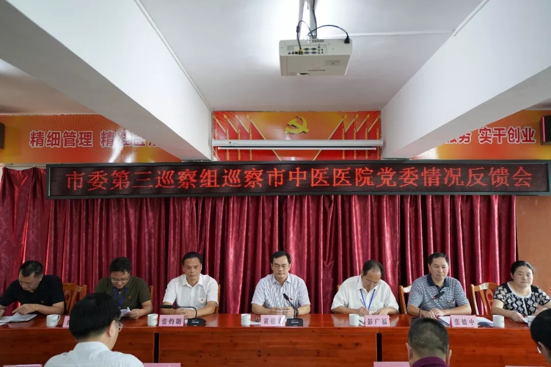 8月2日,市委常委、市纪委书记、市监委主任、市委巡察工作领导小组组长黄建固出席市中医医院党委巡察反馈会议,传达市委书记陈敏听取七届市委第五轮巡察情况汇报时的讲话精神,对市中医医院党委巡察整改工作提出要求,强调要深入贯彻落实习近平总书记重要讲话和重要指示批示精神,把抓好巡察整改作为落实“两个维护”的政治要求和具体行动,结合开展“不忘初心、牢记使命”主题教育,从严从实抓好整改,提升医疗服务水平,推动医院高质量发展。
