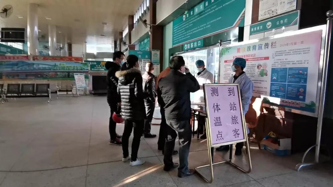 (图为该县纪委监委第一督导组干部在县汽车客运站督查疫情防控工作)