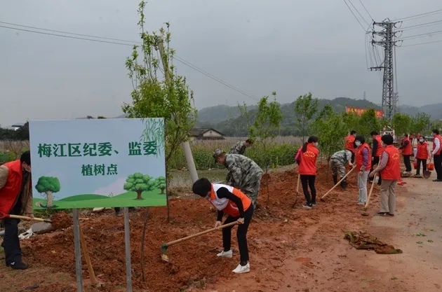 “人勤春来早、植树添新绿”,3月12日上午,梅江区纪委监委组织党员干部到西阳镇太平村开展义务植树活动,为当地栽种梅花200多棵,以实际行动筑牢“绿色屏障”,共建“梅花之城”。