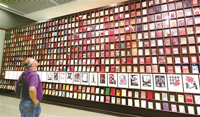 在北京“真理的力量——纪念马克思诞辰200周年主题展览”现场,一位外国观众被马克思原版图书墙吸引。 (图片来源:视觉中国)